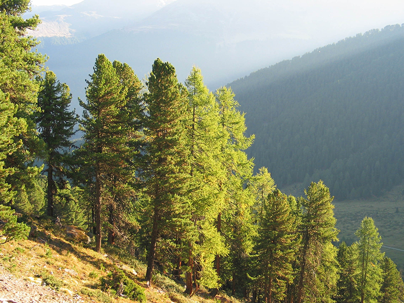 Die Zirbe (Pinus cembra) auch Arbe oder Arve genannt kam vor 12.000 Jahren aus Sibirien zu uns in den Alpenraum. Sie gehört zur botanischen Gattung der Kiefern und wĂ€chst in den Alpen auf 1400 bis 2500m Seehöhe. Zudem vertrĂ€gt sie Temperaturen von bis zu -43°C und besitzt eine hohe Wiederstandskraft gegenĂŒber den StĂŒrmen in den Bergen.