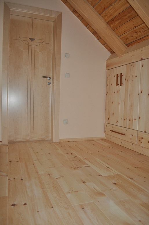 "Zirbenholz Dielen werden vorrangig in Schlafräumen verwendet. Als Filzschuh und Barfußboden erfüllt sie dort bestens ihre Aufgabe.